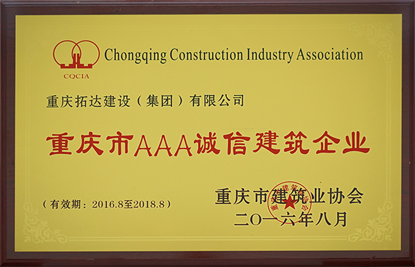 • 2016-2018年度重慶市AAA誠信建筑企業